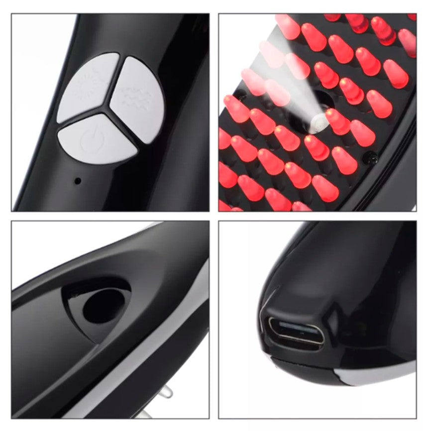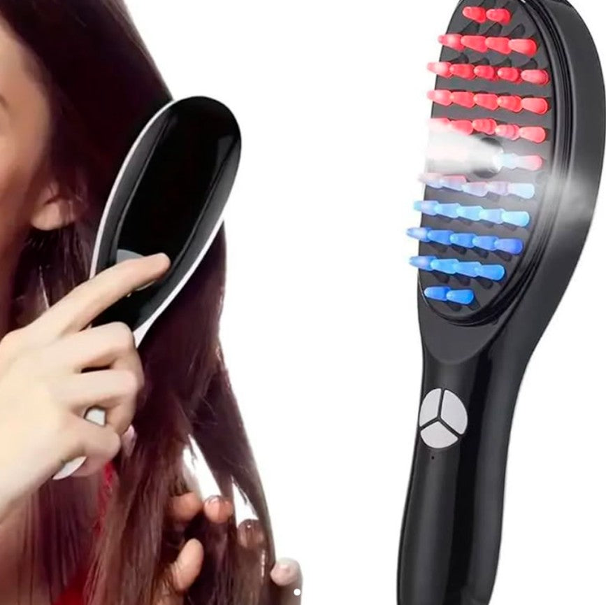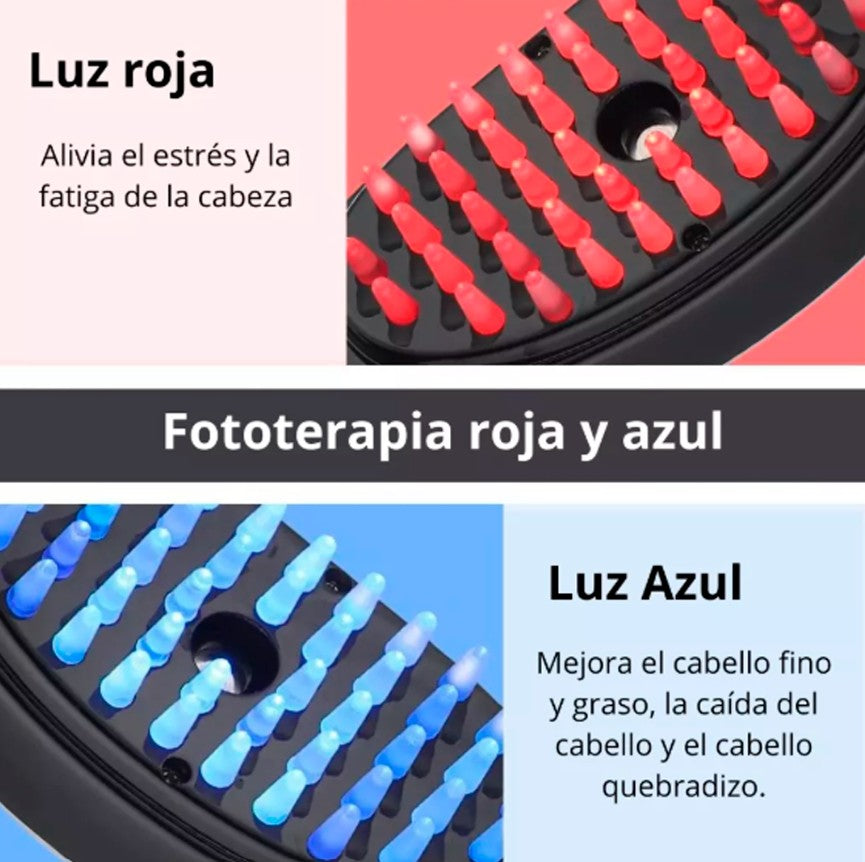 Este cepillo masajeador capilar con microcorrientes y terapia de luz roja y azul es la solución definitiva para estimular el crecimiento del cabello y fortalecer las raíces. Su avanzada tecnología combina vibración, nano atomización y fototerapia para revitalizar el cuero cabelludo y combatir la caída capilar. ¡Dale a tu cabello el cuidado que merece y luce una melena más densa y saludable en menos tiempo!